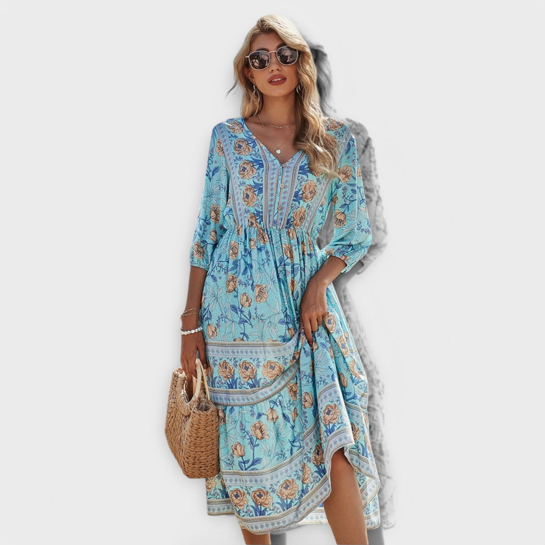 Let yourself be seduced by the timeless charm of this elegant dress. With a refined floral print and a flattering fit, this dress is perfect for both casual and formal occasions. A stylish choice that enriches your wardrobe.